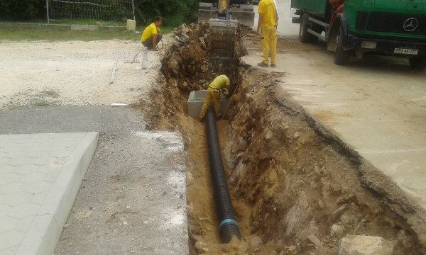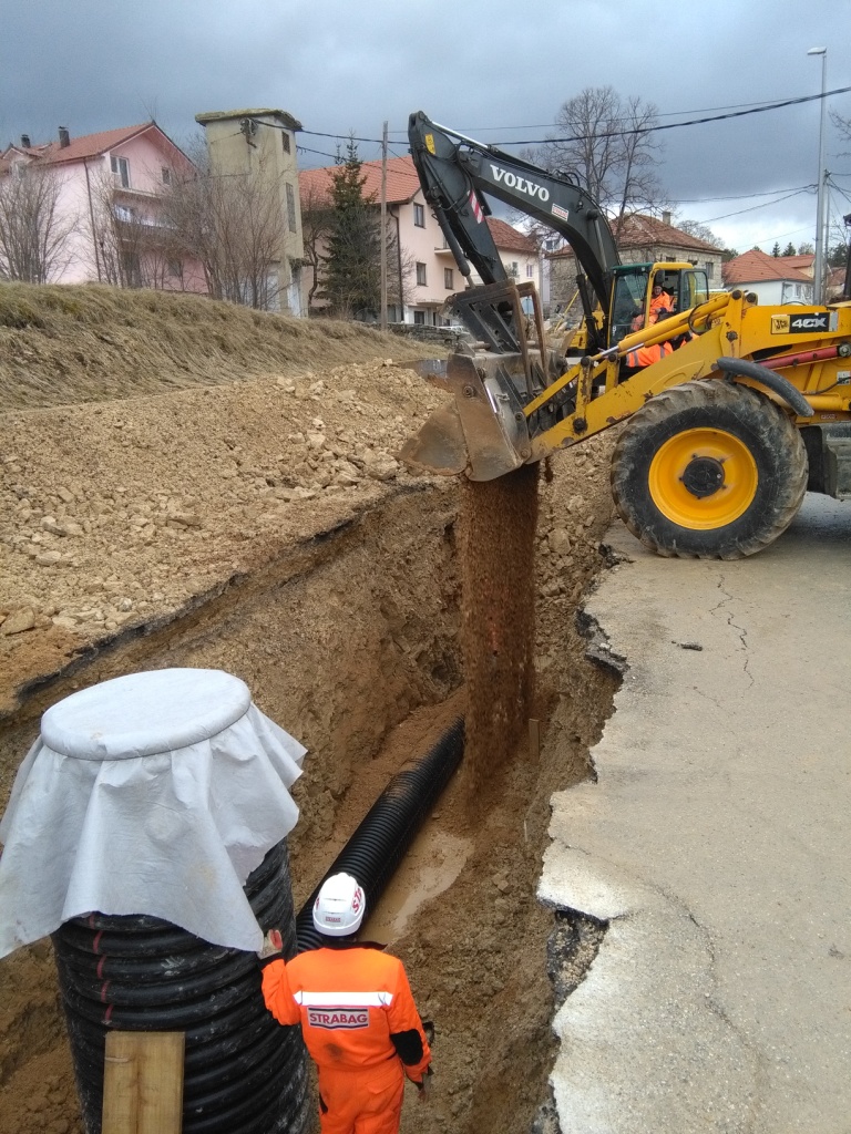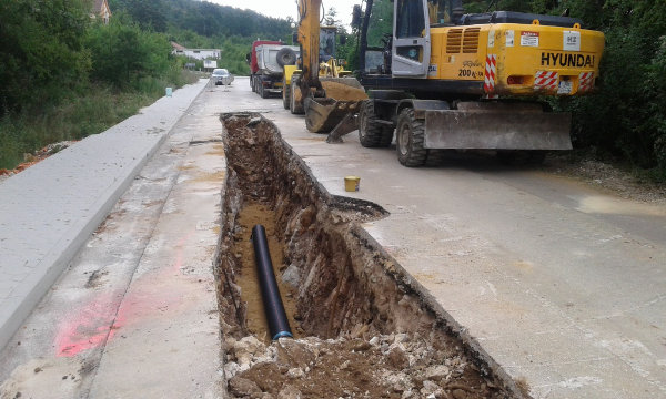 Podaci o općinskom projektu (Tekući i planirani radovi na izgradnji) Vodoopskrba - Vodosprema dimenzije 500,00 m3, - Tlačni povratni vod dužine oko 100 m i promjera cijevi fi 160, - Promjer cijevi glavnog vodovoda je fi 200 i fi 250. Kanalizacija - Promjer cijevi kanalizacije su fi 600, fi 800 i fi 1000. - 4 pumpne stanice.